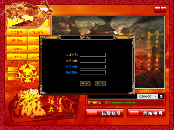 一、打开易游传奇登陆器,选择好您要找回密码的服务器(如下图1)